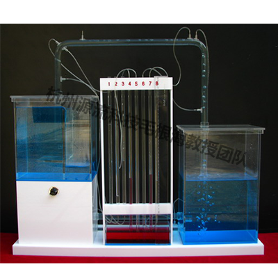 有機玻璃精制的虹吸管與自循環供水系統,低噪環保型水泵,自吸抽氣裝置,流量計,流量計標定曲線,有滑尺與校準鏡面的多管(含真空度測定)的組合測壓計,測量精度+0.01,計算機型實驗桌,高教社出版的教材。