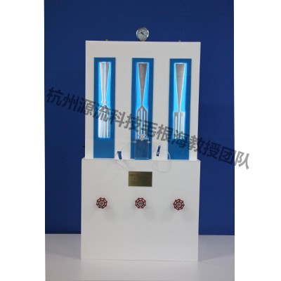 自循環供水系統,20米揚程泵,T4光源,顯示屏,有機玻璃精制的文氏管模型、突縮管模型、普通閘門槽和抗空化閘門槽模型,常溫水沸騰的裝置,真空測壓計,計算機型實驗桌,高教社出版的教材。喉道最大流速18m/s,最大真空度接近10m水柱。
