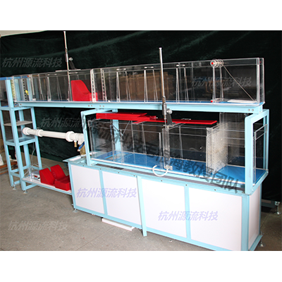 美國原裝進口0.5級精密傳感器,實時數顯1級精度電測流量儀,并配有三角量水堰與零點測量裝置。上、中、下槽空間三疊層緊縮布置,上工作槽長×寬度為3m×100mm。最大流量5000 ml/s,設計流量2000~3000 ml/s,導軌的不平整度±0.15mm;其他配置有蓄水槽,穩水頭部,多種實驗模型、標準測針2套、供水泵、流量調節裝置等主要部件;實驗精度±(0.01~0.03)。高教社出版的配套教材。